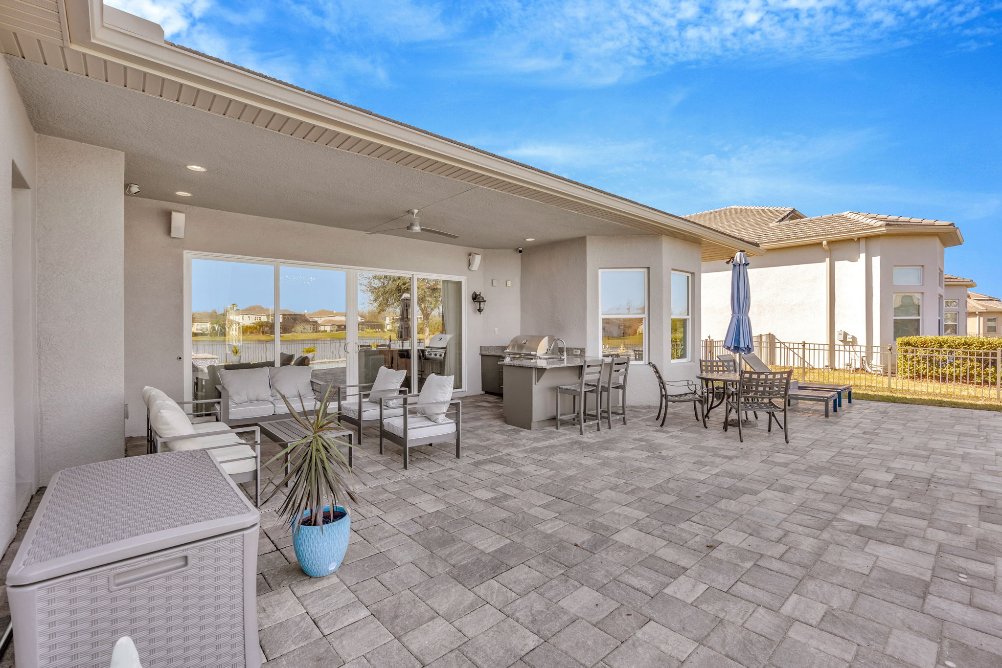 Welcome to 2552 Oakwood Preserve Drive, located in the highly sought after community of The Ridge at Wiregrass Ridge in Wesley Chapel, FL. This exquisite 3438 sqft POOL home offers 4 bedrooms, 4 full bathrooms + a powder room (also known as the pool bath), a CLUB room (could also be used as a bonus room, second living room, or office), and 2 car garage. As you come through the gated courtyard and enter the double doors you will be WOWED by the openness and views you can see of the backyard oasis which features a HEATED SALT-WATER POOL & SPA (new pool pump in 2022), GAS FIRE PIT, COMPLETE OUTDOOR KITCHEN, electrical surge protector, topped off with stunning WATERFRONT VIEWS (and outdoor furniture is INCLUDED) all completely fenced with a wrought iron fence. The family room is perfect for entertaining and is fully-equipped with a complete WET BAR, Formal Dining Room and flows nicely into the GOURMET KITCHEN which boasts QUARTZ COUNTERTOPS, STAINLESS STEEL appliances (DOUBLE OVEN & 6 BURNER GAS COOKTOP VIKING STOVE, and a BARNHOUSE SINK), 42” SHAKER STYLE CABINETS with under/over lighting, REVERSE OSMOSIS and a retractable wall-mounted POT FILLER. This kitchen is every chefs dream! Engineered HARDWOOD Floors, Central vacuum, Custom Window Treatments, HURRICANE IMPACT WINDOWS & SLIDERS, PLANTATION SHUTTERS throughout the whole home, even a BOSE Surround Sound System which is also in the garage and pool area. This exceptional home features a spacious garage with sleek EPOXY flooring, a TANKLESS WATER HEATER, and a WATER SOFTNER SYSTEM for added convenience. The beautifully upgraded bonus room showcases $30k worth of CUSTOM-BUILT BOOKCASES with integrated LIGHTING, along with MOTORIZED WINDOW TREATMENTS in both the living room and bonus room. Each bedroom is equipped with CUSTOM CLOSET SYSTEMS, ensuring optimal organization. For added value, the WASHER & DRYER, all mounted TVs, and a RING SECURITY system are included, making this home move-in ready with premium upgrades throughout! This SINGLE STORY Carlyle model was custom built by GL Homes, a luxury homebuilder who specializes in their amazing quality and RESORT-STYLE amenities. The Ridge includes 24-hr gate attendant, maintenance free which includes lawn care, landscape maintenance, fertilization, mulching, and exterior pest control. Conveniently located across from the Tennis Courts. This home shows like a MODEL and furnishings are negotiable! Available fully furnished or vacant—your choice! "Fully furnished" includes everything: furniture, appliances, kitchenware, and décor and would be the perfect opportunity for those buyers looking for a second home, or those relocating who want an easy move.